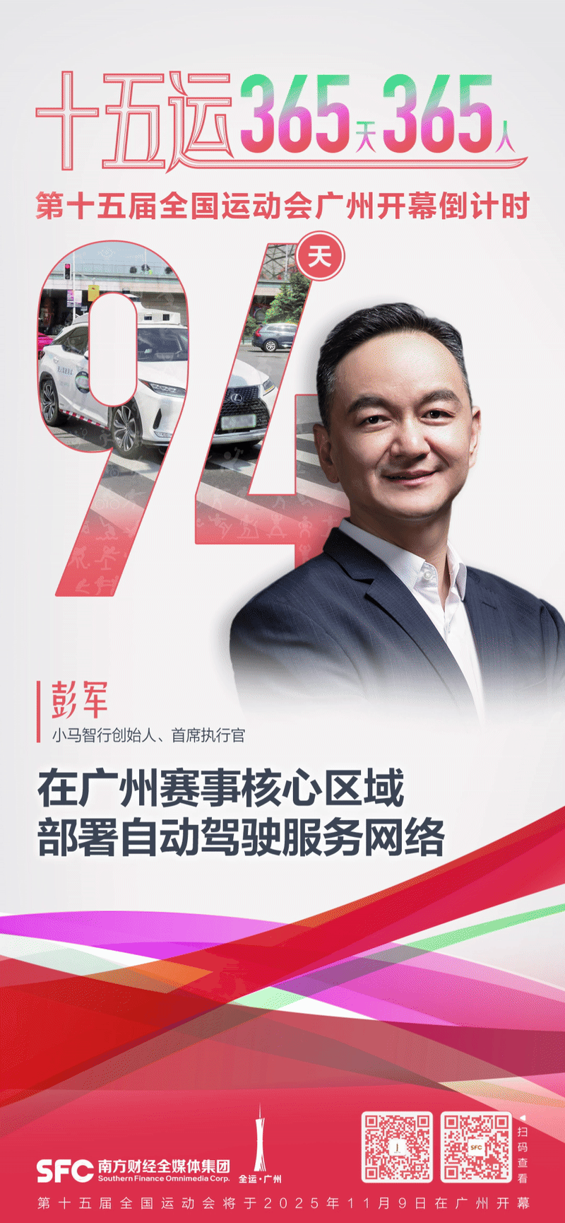 小马智行创始人、首席执行官彭军表示,小马智行正以十五运会为契机,在赛事核心区域部署自动驾驶服务网络。小马智行自动驾驶Robotaxi围绕媒体接驳、嘉宾出行、市民保障等出行场景,在媒体中心、核心场馆、主要酒店、广州南站、白云机场等赛事和城市地标提供了多种自动驾驶出行服务。