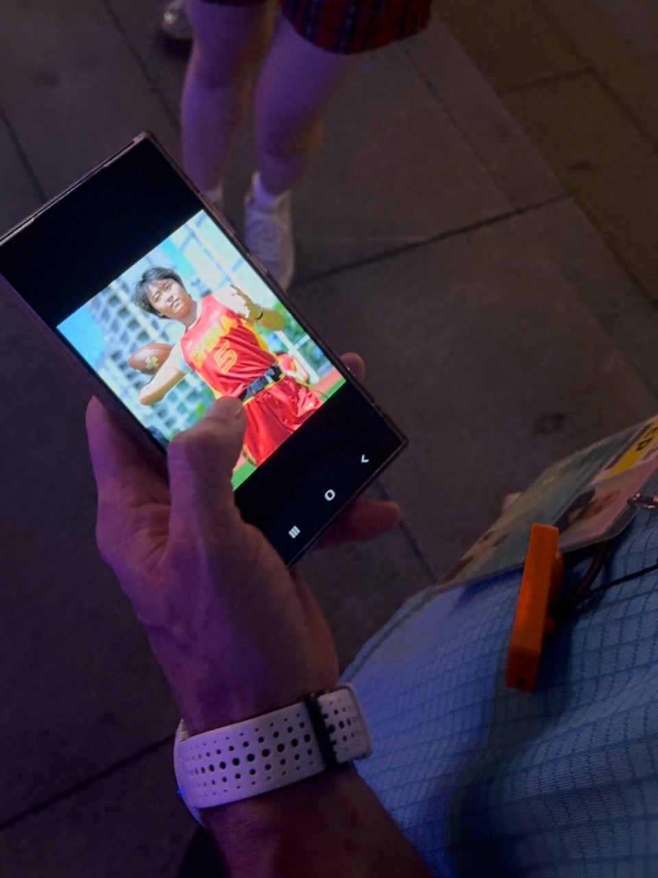 “好多人想看中国运动员的照片,我赶紧拍了一批。”昨晚,来自美国腰旗橄榄球组织的摄影师埃内斯托・坎普萨诺在工作之余,和他的同事凯利·安· 托拉尔游览了璀璨夜幕下的交子大道。聊起他此行在成都世界运动会的工作,埃内斯托忙拿出手机展示里面的图片。